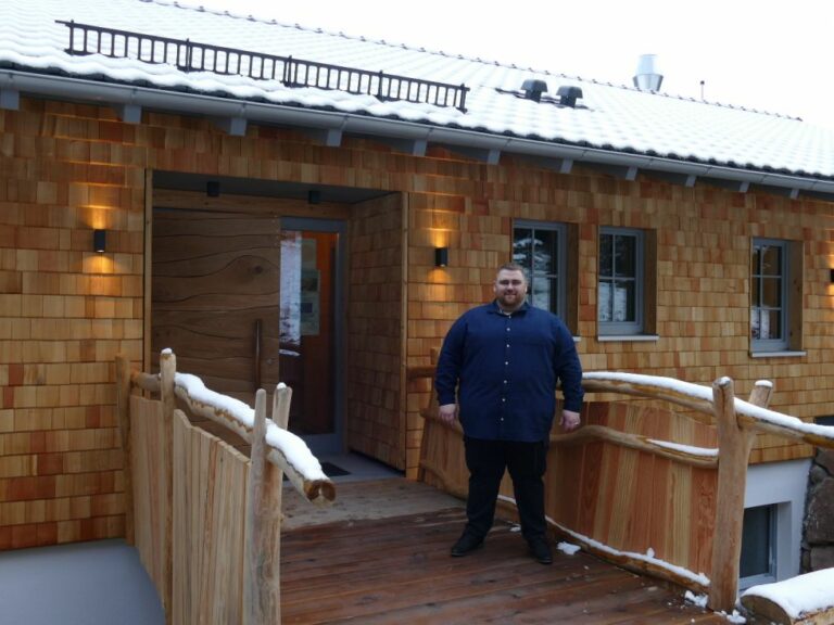 Rund 180 Kubikmeter Fichte und Weißtanne wurden für das Gebäude verbaut. 70 Personen finden in der heimeligen Gaststube Platz.