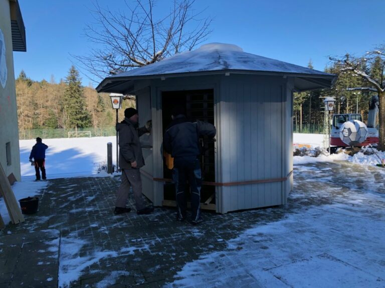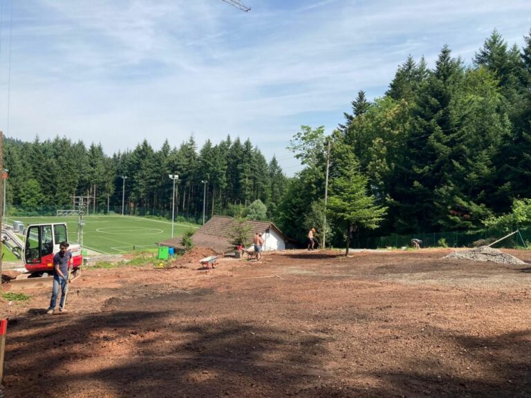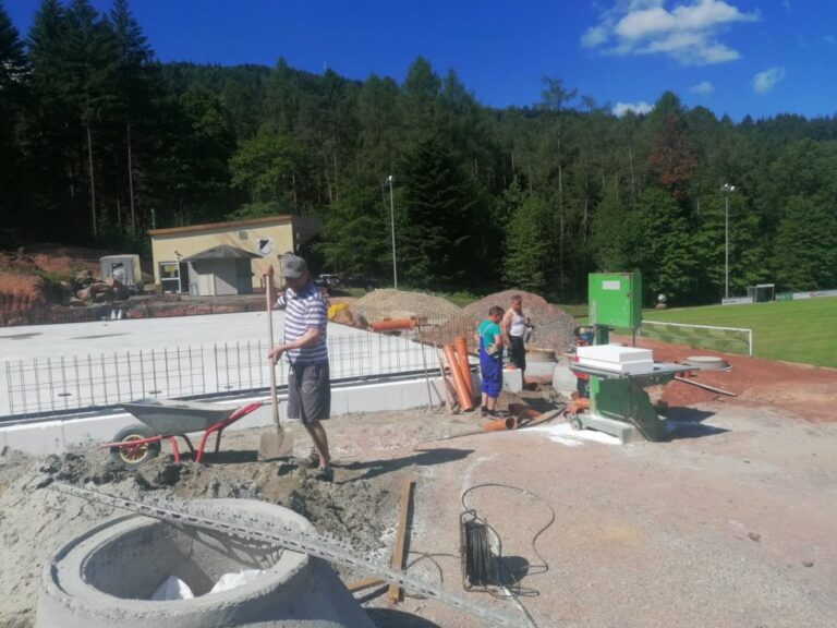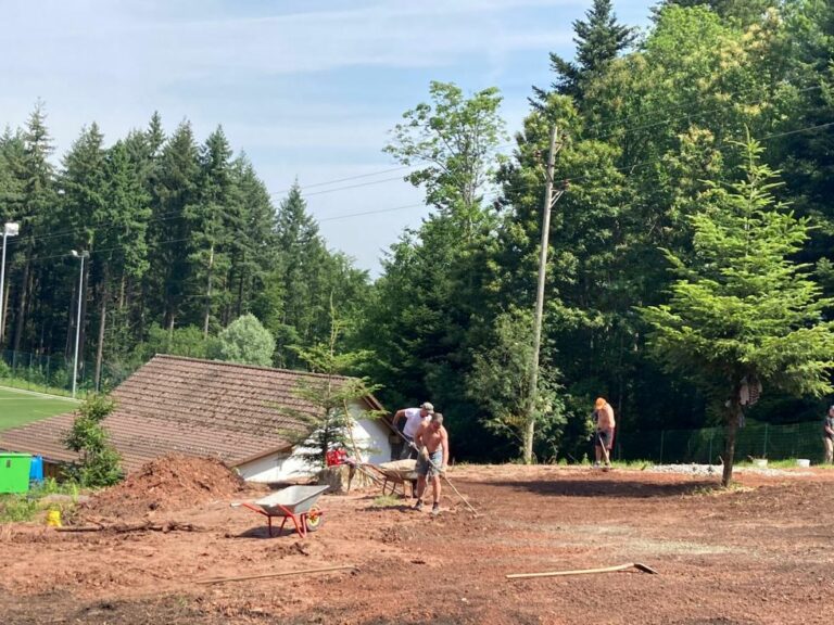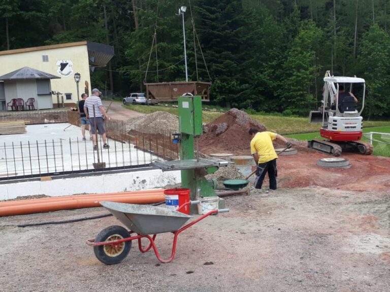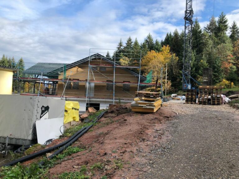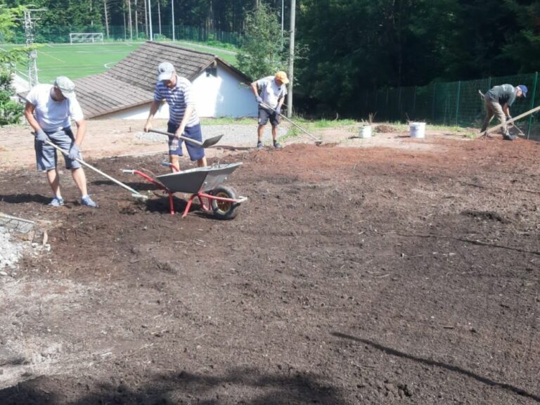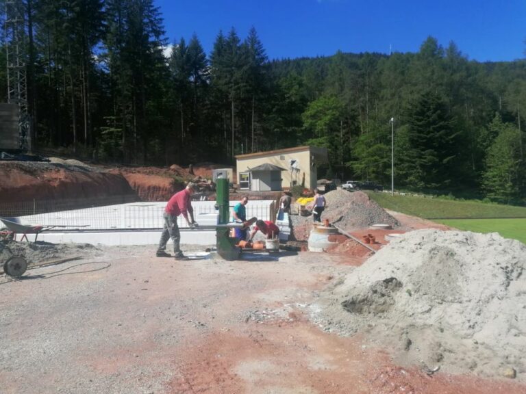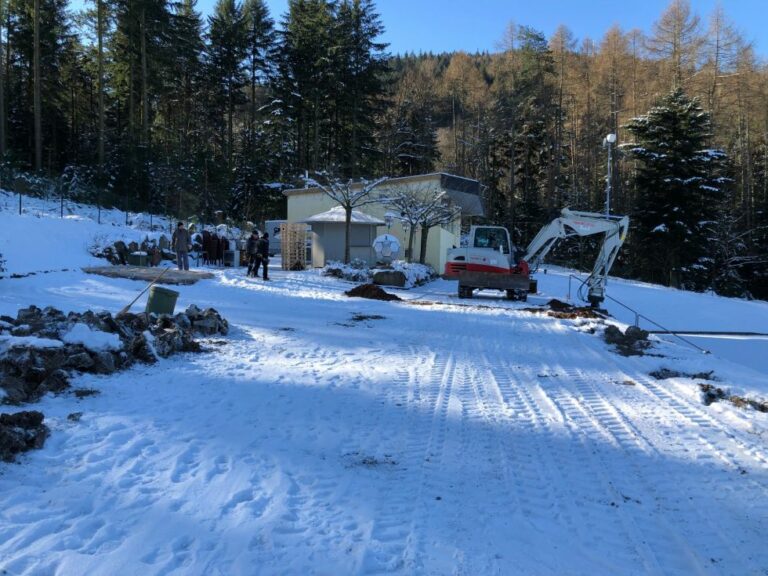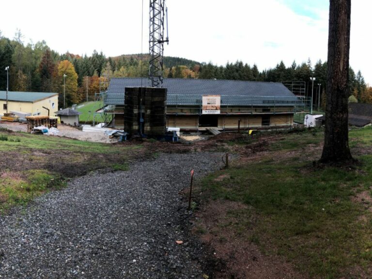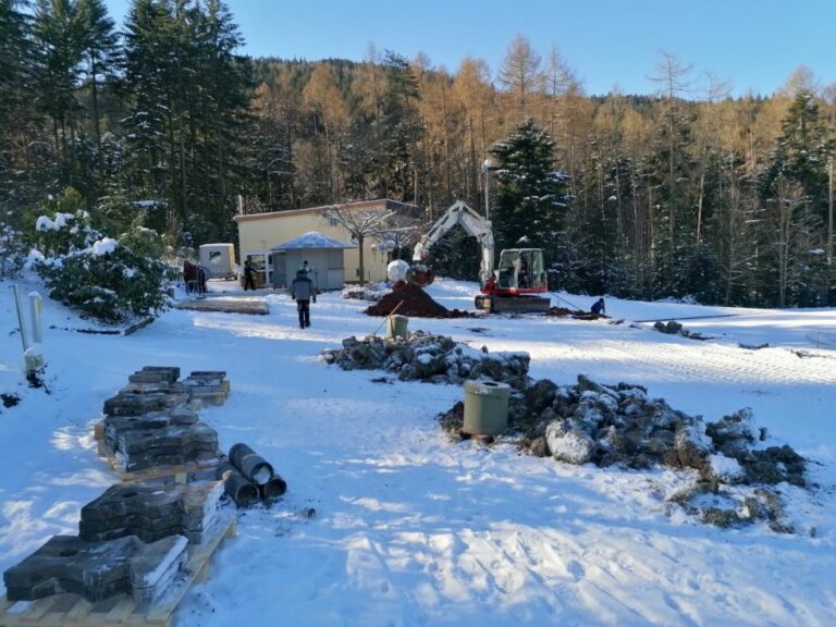 Trotz Holzhütte muss doch so mancher Stein aufeinander gesetzt werden. Hier die aktuellen Arbeiten. Plakette von Leader überreicht.