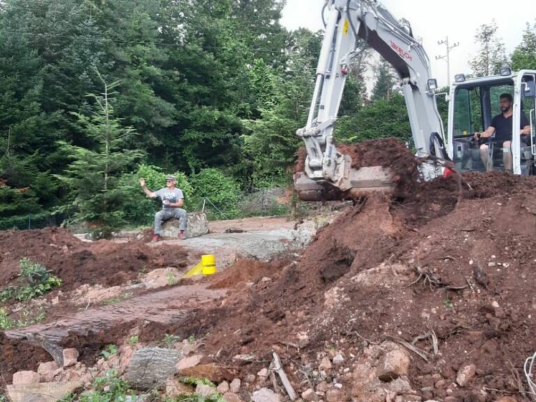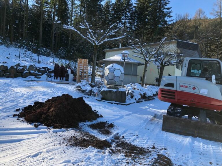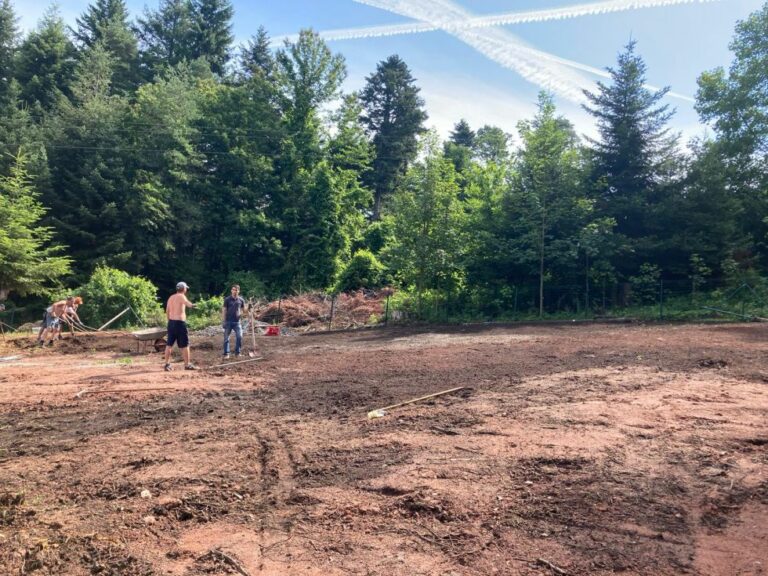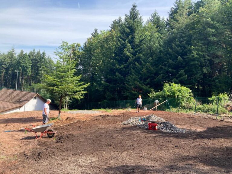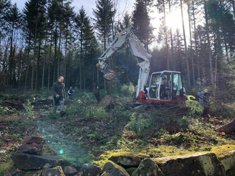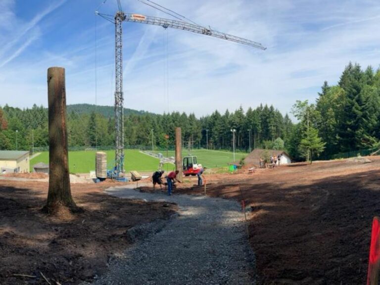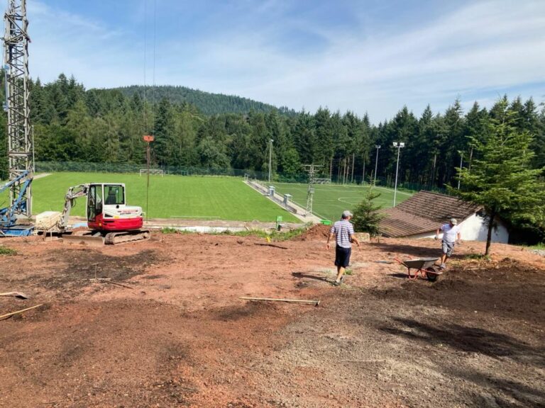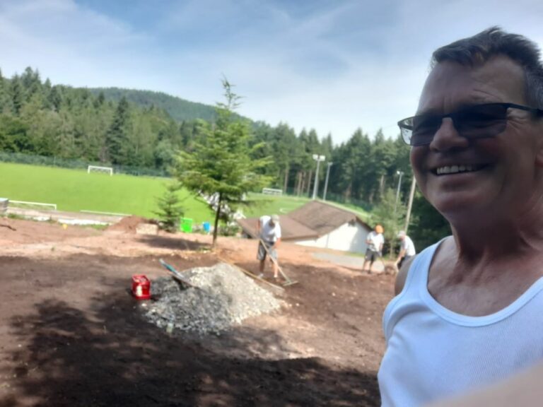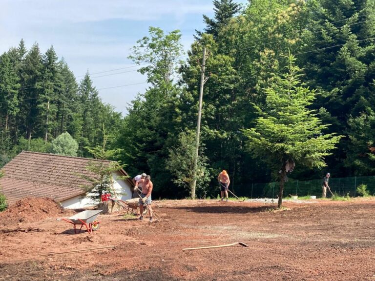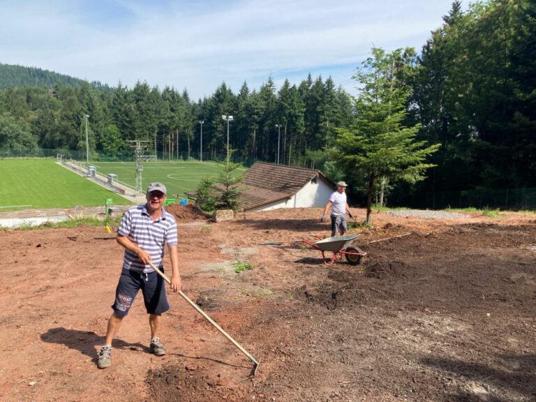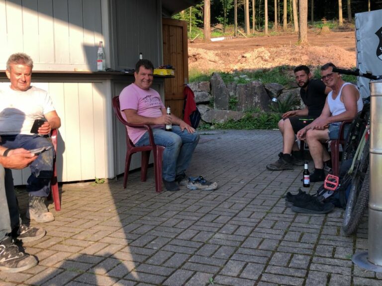 Trotz Holzhütte muss doch so mancher Stein aufeinander gesetzt werden. Hier die aktuellen Arbeiten. Plakette von Leader überreicht.