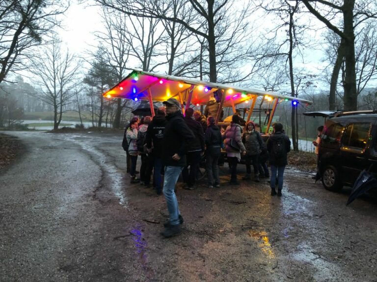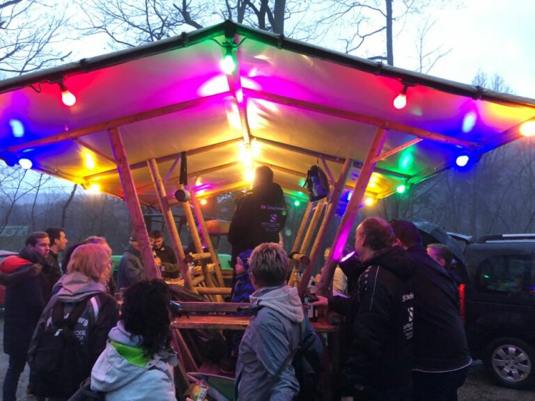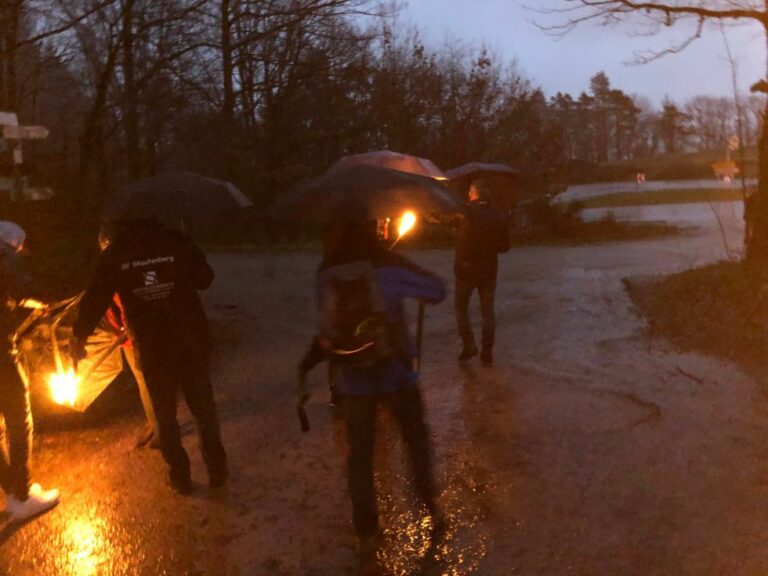 Unter dem Motto „es gibt kein schlechtes Wetter, vielleicht nur schlechte Kleidung“ startete man ab Staufenberghalle in Richtung Naturfreundehaus über Sattelei zum Endziel Clubhaus. Mit Fackeln ging der letzte Fußmarsch von der Sattelei zum Clubhaus, wo DJ Dominik die Regler bestens in Szene setzte. Über 60 Teilnehmer hatten Spaß an diesem besonderen und gelungenen Event-Tag.