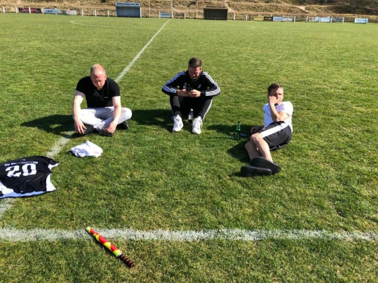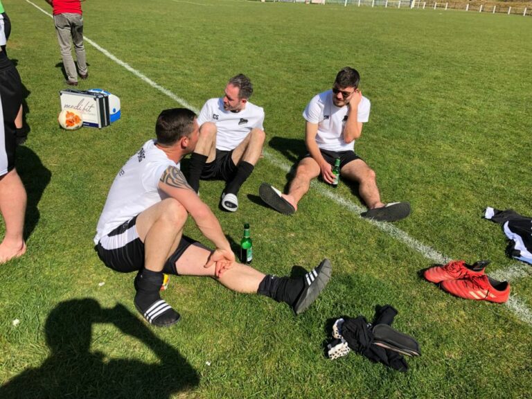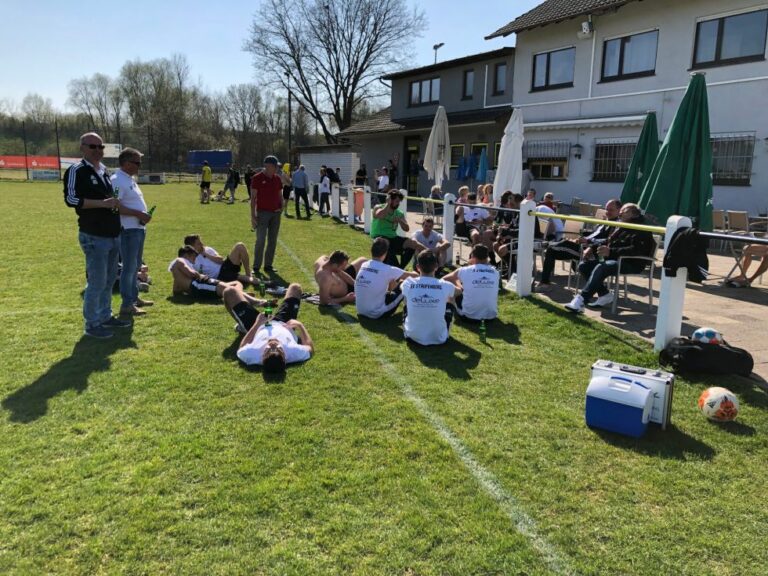 Ein verdientes Bier nach dem Schlusspfiff nach dem Sieg in Mörsch. Na also, geht doch noch! Der erste Sieg nach der Winterpause in Mörsch war dazu hoch verdient. Die Tore fielen zwar erst in der 2. Hälfte – waren dafür alle drei sehenswert. Das 0:1 durch Thomas Djuricin in der 54., 0:2 von Alexander Murr in der 57. und in der Schlussminute setzte Steffen Schmeiser per Kopf den Endstand her!