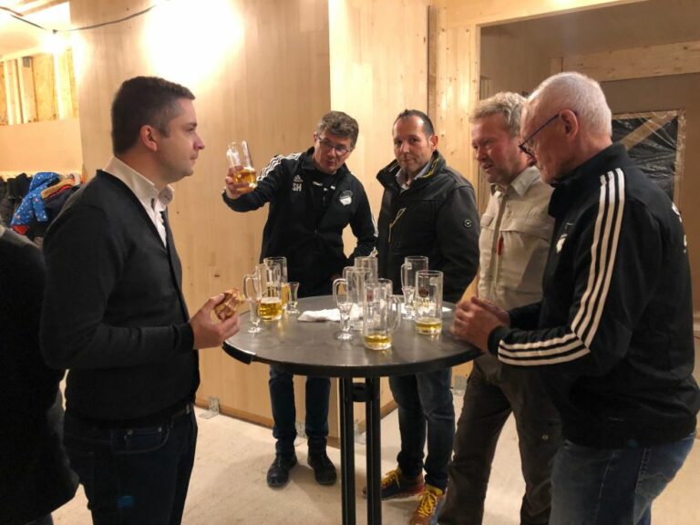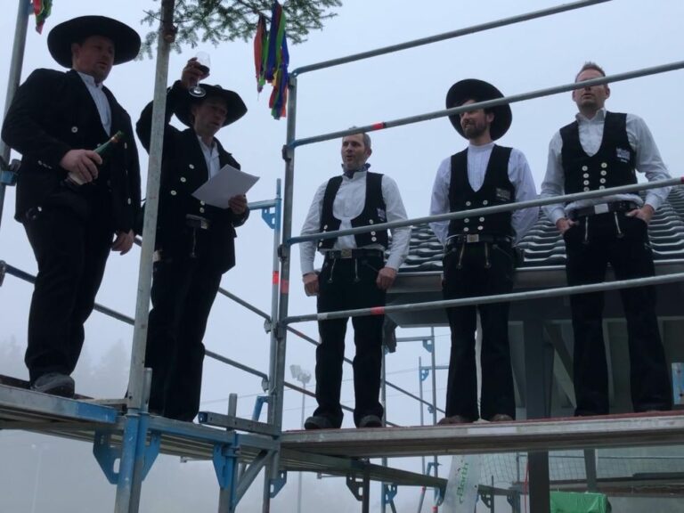 8 Monate nach dem Spatenstich im März konnte man am vergangenen Freitag das Richtfest feiern. Die Firma Holzarbeit Schmeiser mit Architekt Marco Schmeiser übernahm mit deren Zimmermännern die lang gepflegte Tradition. Mit dem Richtspruch vom Meister Timo Eipper am geschmückten Dach der Hütte feierte man ein weiteren Meilenstein des Jahrhundertprojekts.