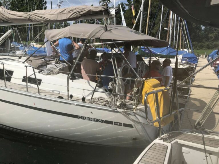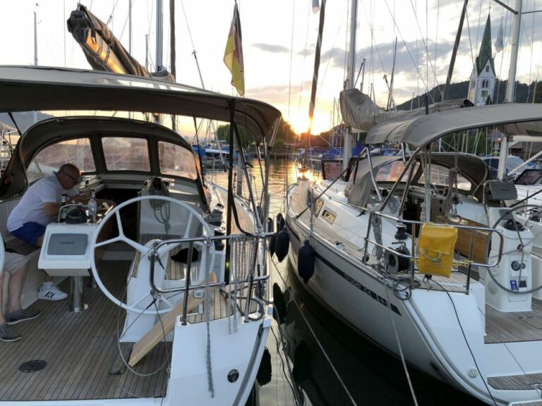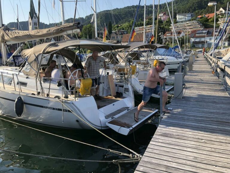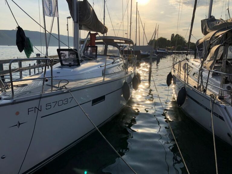 Dabei werden die abwechslungsreichen Eindrücke, wie der Abstecher nach Meersburg, die Hafenparty in Kirchberg oder die An- und Ablegemanöver in Konstanz, noch nachhaltig in Erinnerung bleiben. Mit 2 Yachten Bavaria 37 Cruiser waren die 14 Mann vom SVS unter der Anleitung der inzwischen auf 5 Skipper mit Schein und Patente angewachsenen Führungscrew mit allerlei Manöver wie Segel setzen und bergen, Halse, Wende, ankern und Leinen verknoten beschäftigt.