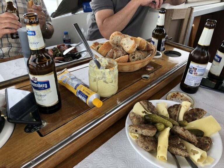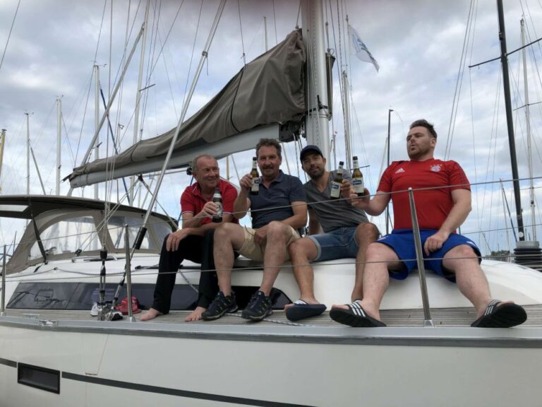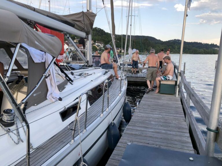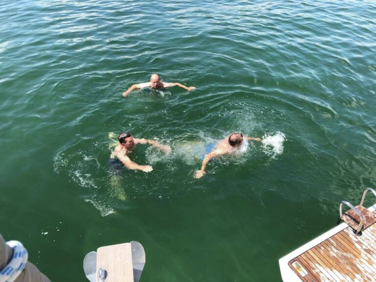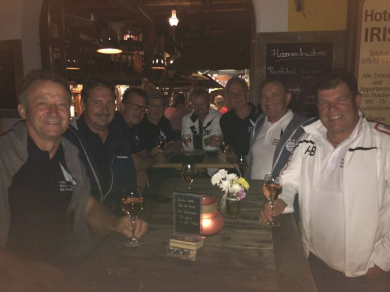 Viel Sonne mit gelegentlichen leichter Briese ließ viel Stimmung aufkommen. Auch kulinarisch, vor allem getränketechnisch, musste keiner Not leiden. Zum Abschluss am Sonntag konnte man in der schönsten Bucht vor der Insel Mainau mit einem Badestopp sich etwas von den „Strapazen“ erholen, bevor es wieder zum Zielhafen nach Sipplingen ging.