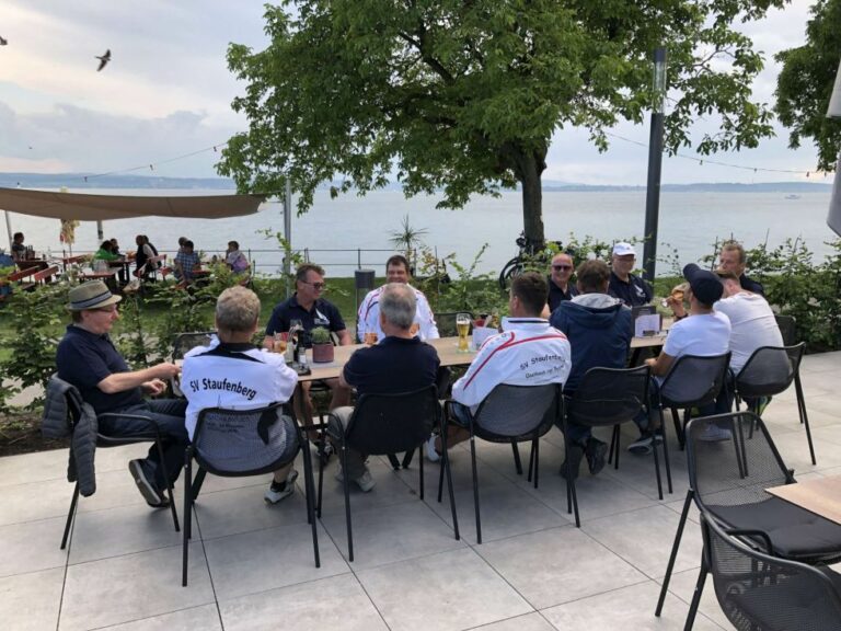 Gewöhnlich sind Fußballer glückselig beim Ausüben der Sportart mit Ball, Tore und grünem Rasen. Zumindest einmal im Jahr allerdings tauschen die AH-Sportler des SV Staufenberg die Arbeitsgeräte mit Segel und Leinen, und das schon seit über 20 Jahren. Ausnahmsweise über Fronleichnam anstatt Christi Himmelfahrt ging es wieder einmal an den Bodensee zum 5-tägigen Segeltörn.