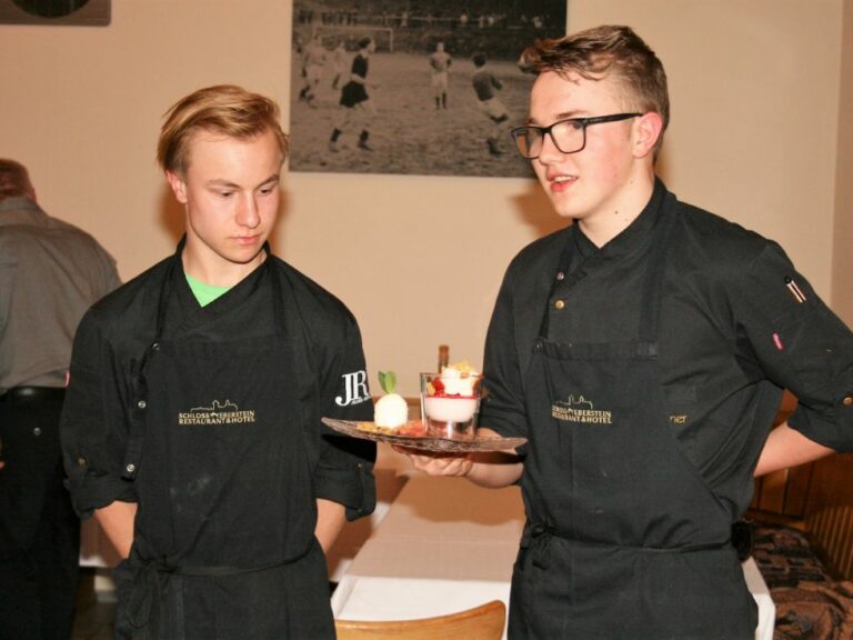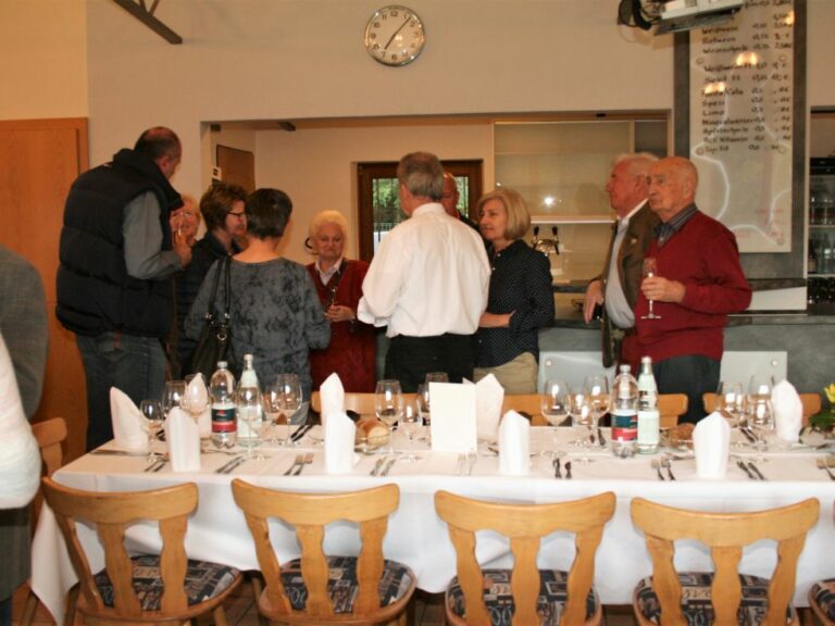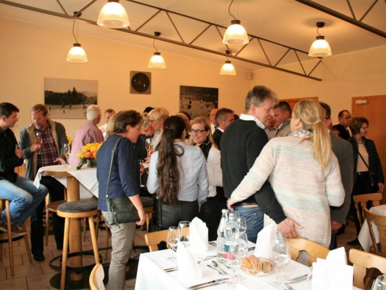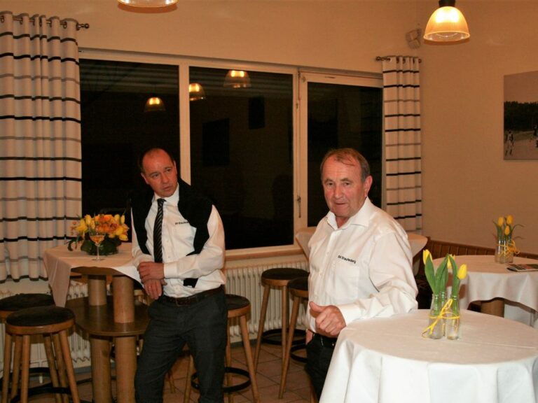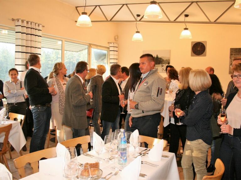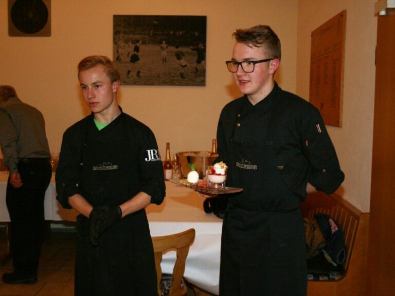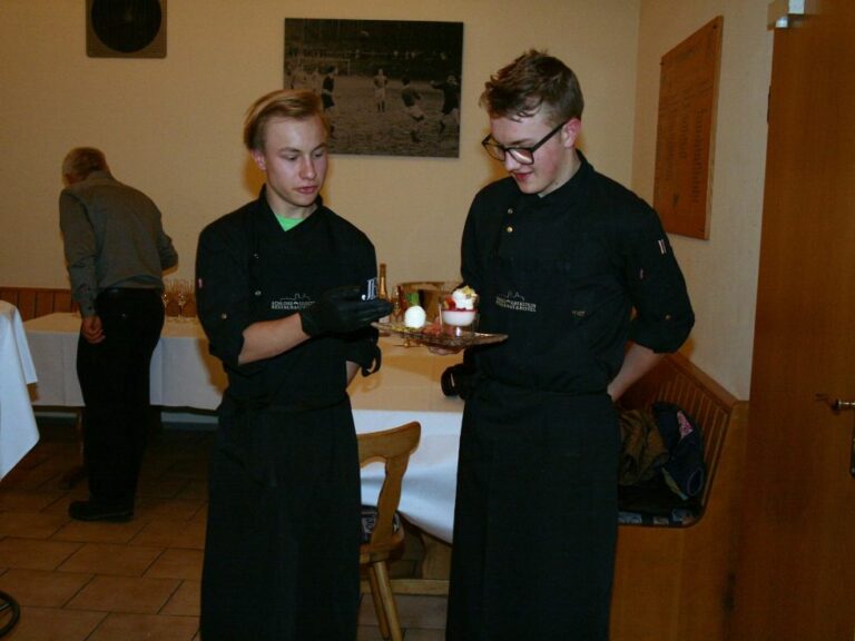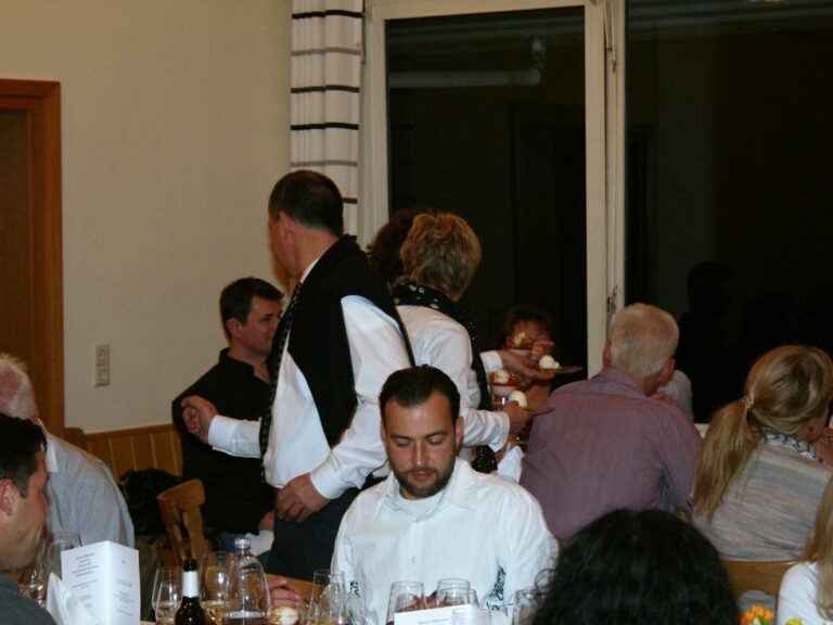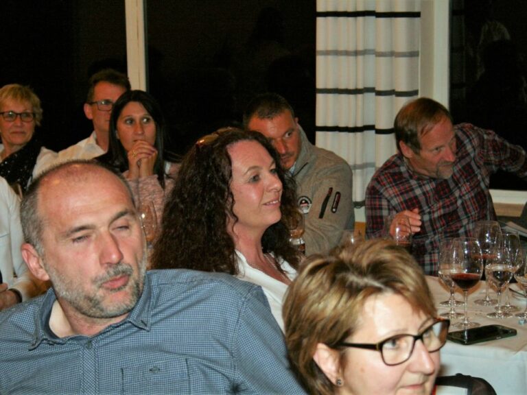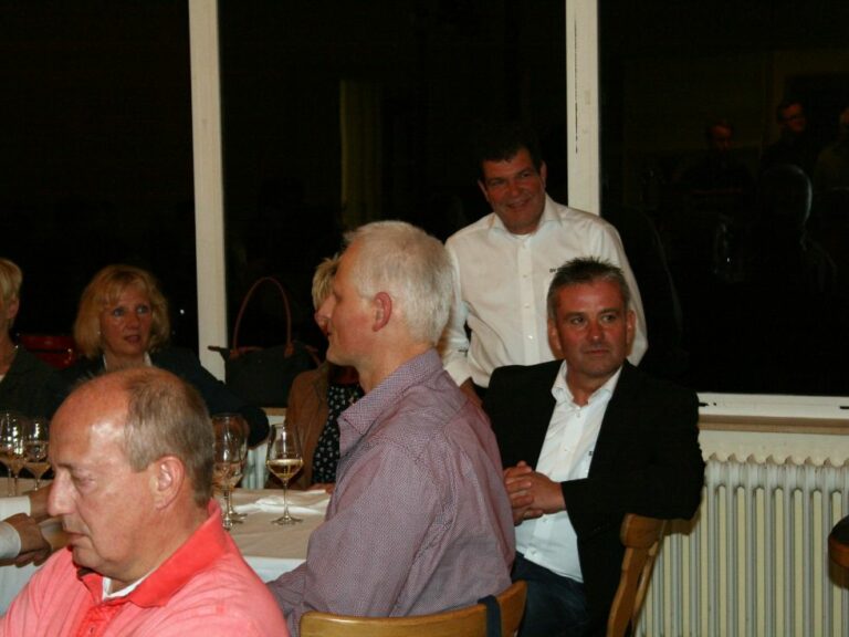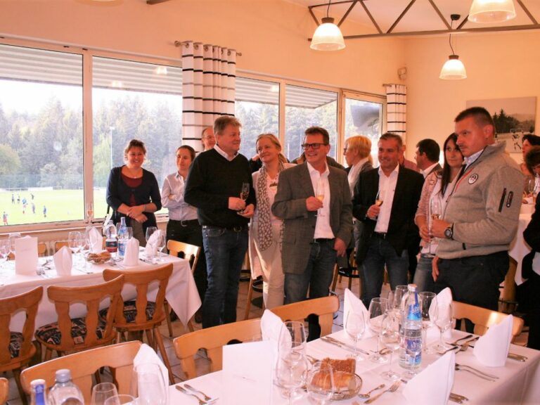 Nach dem Sektempfang und der Begrüßung durch Fördervereins-Chef Martin Dernbach im vollbesetzten Clubhaus gab es die Weinprobe vom Schloss Eberstein. Neben dem Rose-Sekt kamen Weißwein, Rotwein und Dessertwein zur Verkostung. Das Wildschwein wurde zubereitet durch Gourmet-Koch Bernd Werner vom Schloß Eberstein, der unterstützt wurde von den Nachwuchs-Gourmets-Köchen Nico Werner und Phillip Dernbach, die jeweils die Vor-Haupt-und Nachspeisen profihaft vorstellten.