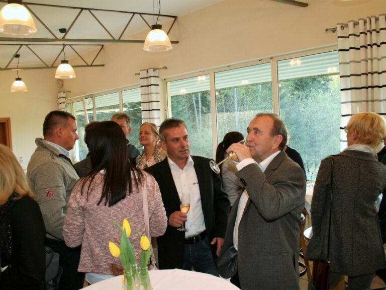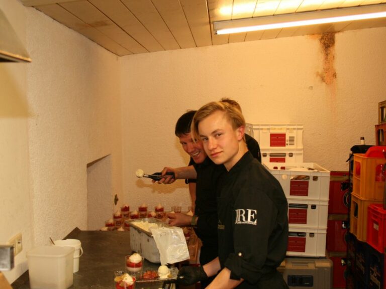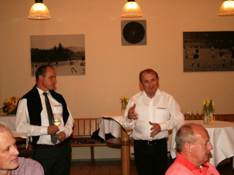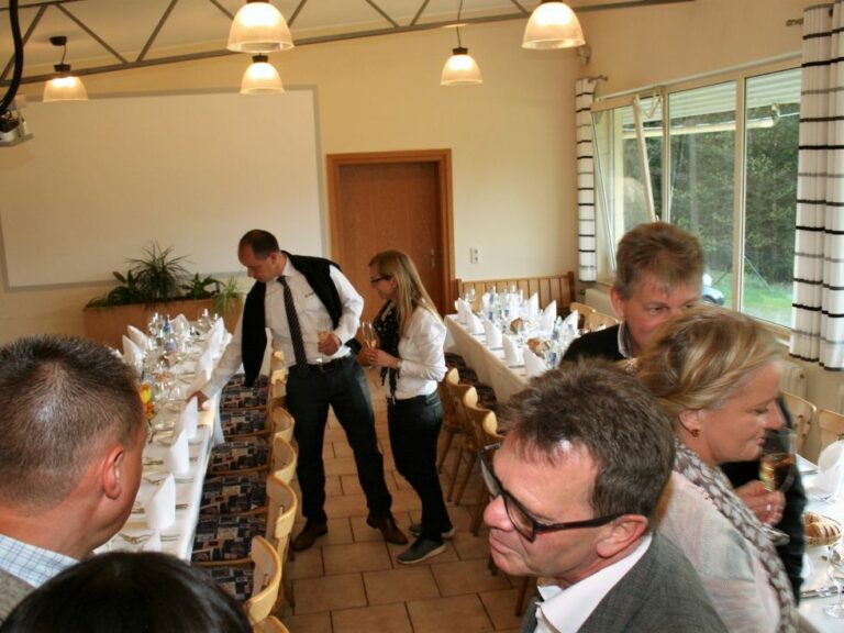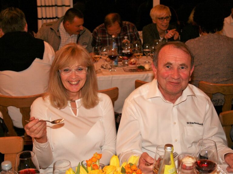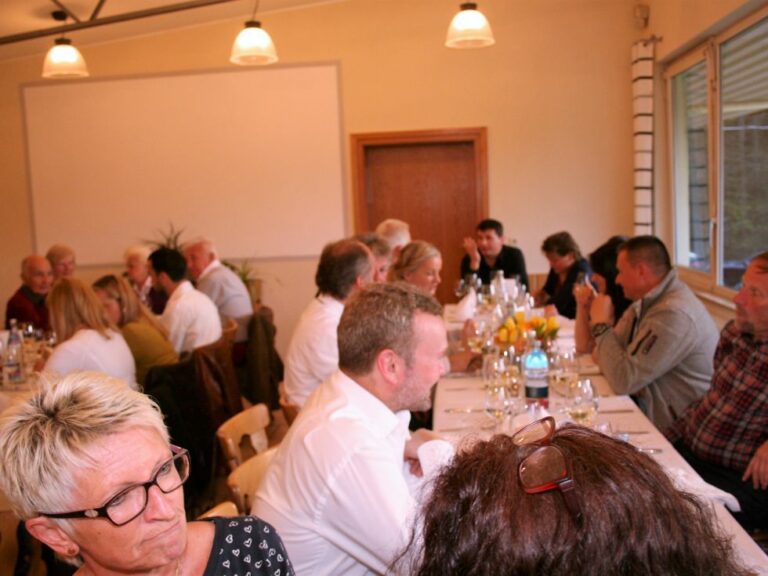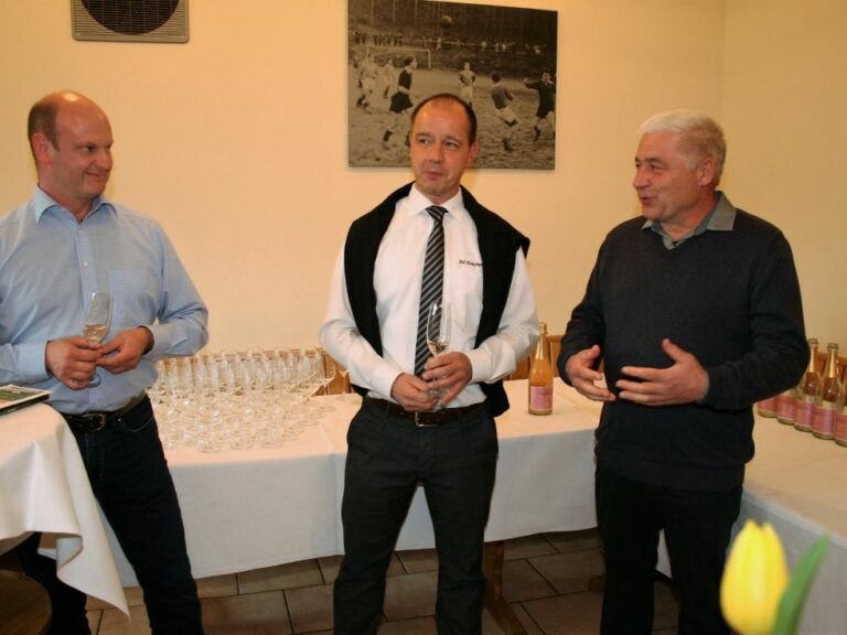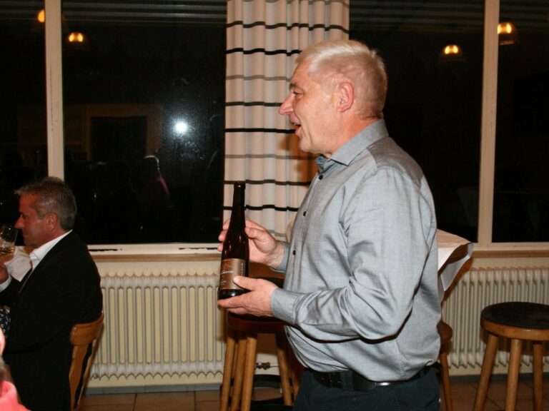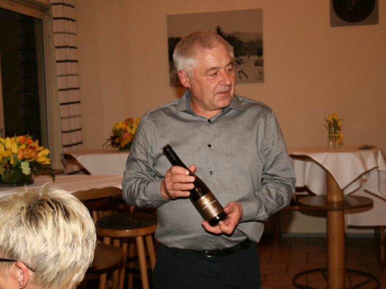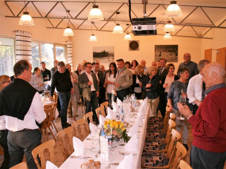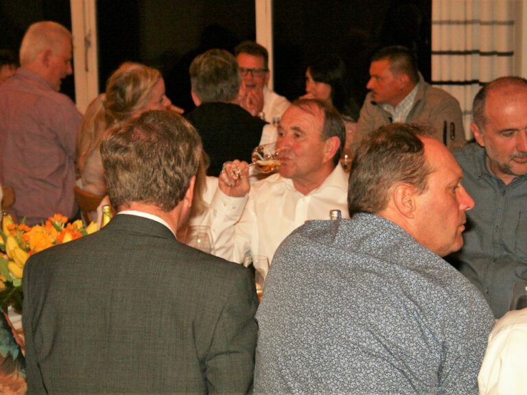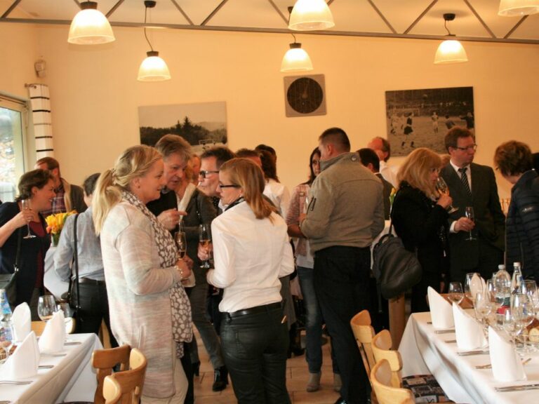 Nach dem Sektempfang und der Begrüßung durch Fördervereins-Chef Martin Dernbach im vollbesetzten Clubhaus gab es die Weinprobe vom Schloss Eberstein. Neben dem Rose-Sekt kamen Weißwein, Rotwein und Dessertwein zur Verkostung. Das Wildschwein wurde zubereitet durch Gourmet-Koch Bernd Werner vom Schloß Eberstein, der unterstützt wurde von den Nachwuchs-Gourmets-Köchen Nico Werner und Phillip Dernbach, die jeweils die Vor-Haupt-und Nachspeisen profihaft vorstellten.