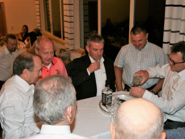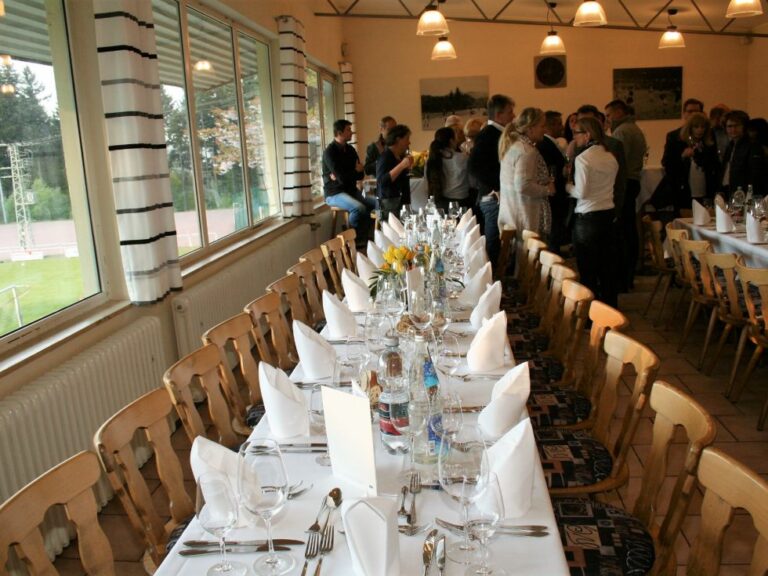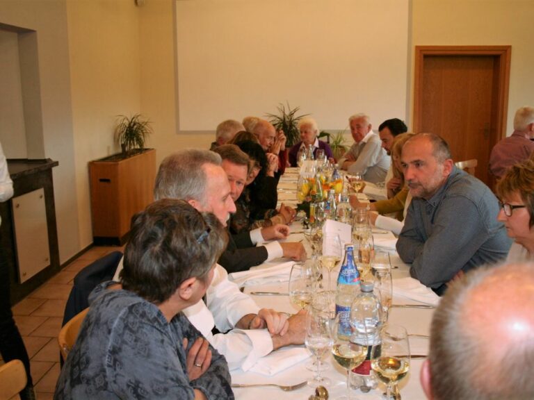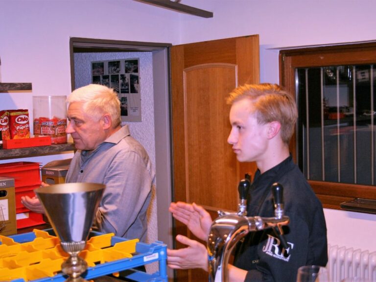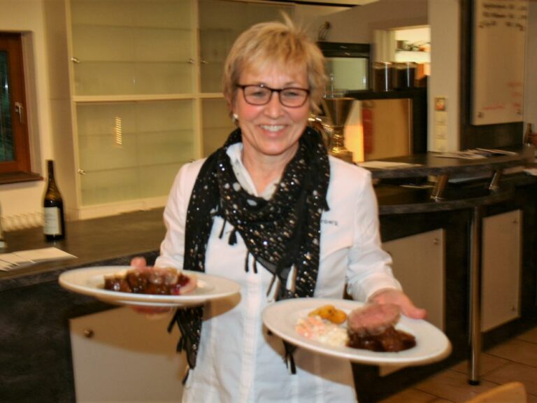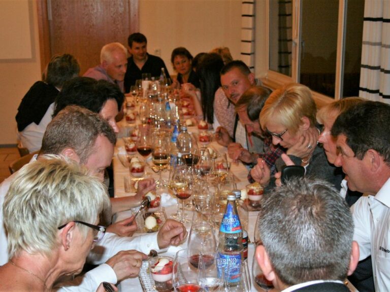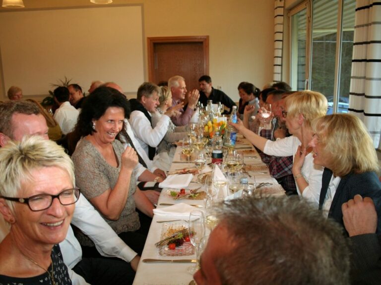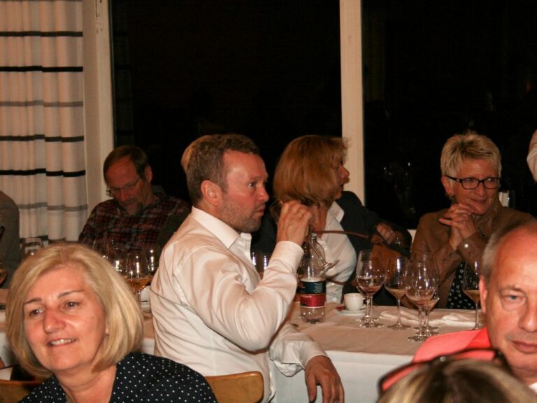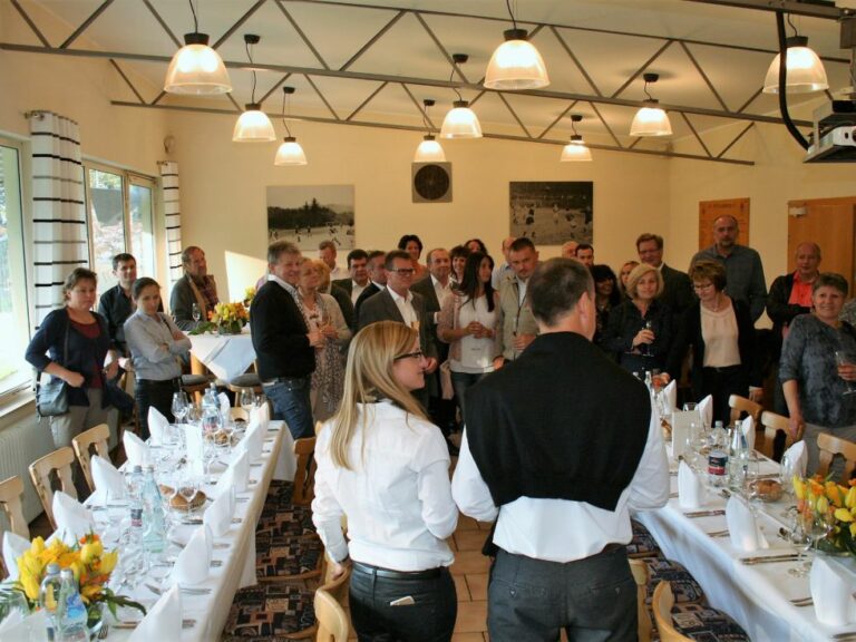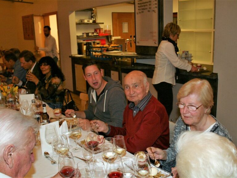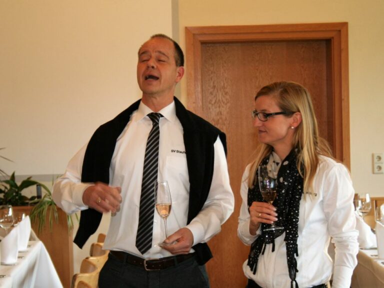 Nach dem Sektempfang und der Begrüßung durch Fördervereins-Chef Martin Dernbach im vollbesetzten Clubhaus gab es die Weinprobe vom Schloss Eberstein. Neben dem Rose-Sekt kamen Weißwein, Rotwein und Dessertwein zur Verkostung. Das Wildschwein wurde zubereitet durch Gourmet-Koch Bernd Werner vom Schloß Eberstein, der unterstützt wurde von den Nachwuchs-Gourmets-Köchen Nico Werner und Phillip Dernbach, die jeweils die Vor-Haupt-und Nachspeisen profihaft vorstellten.