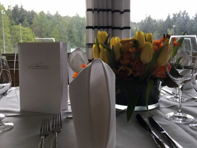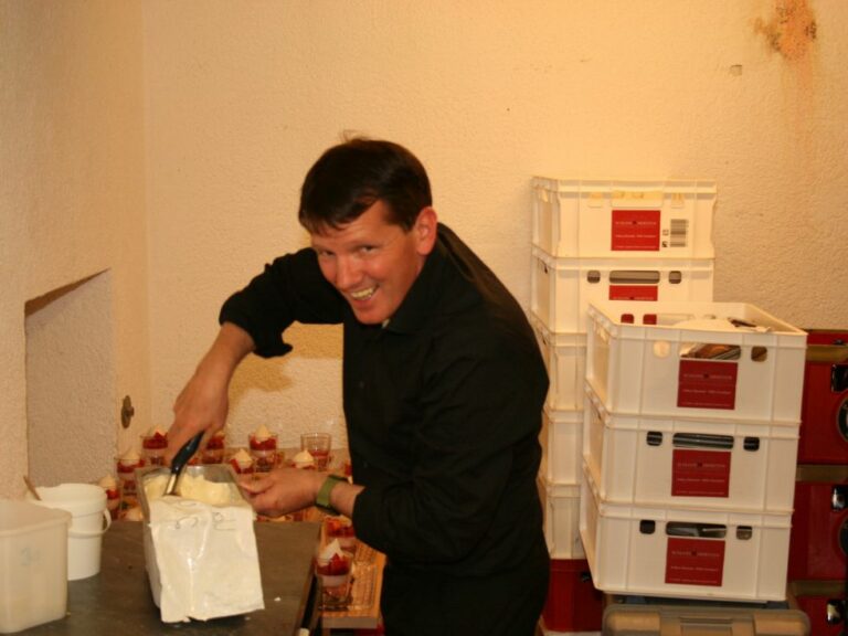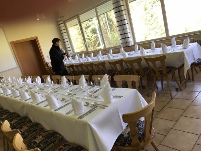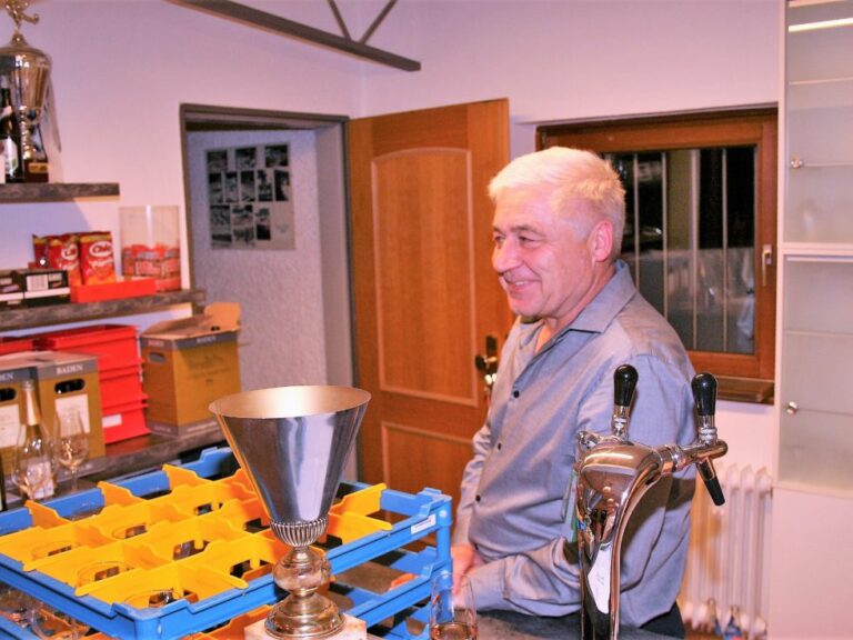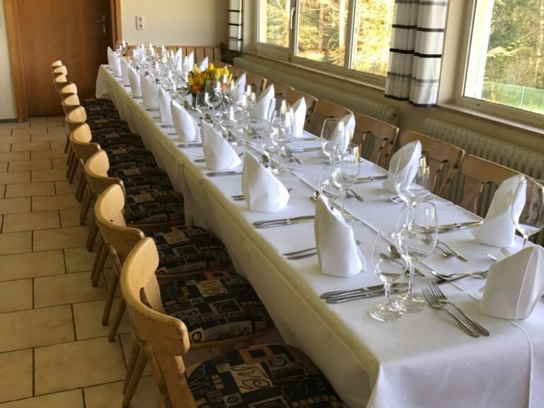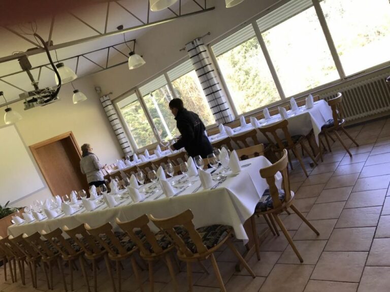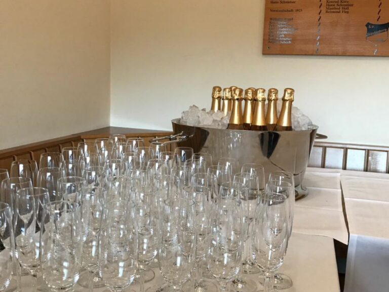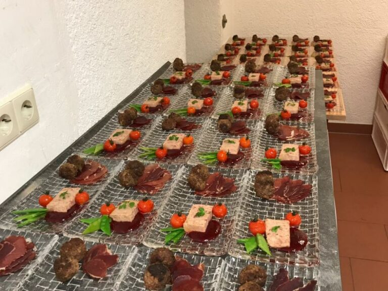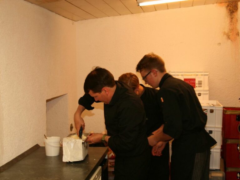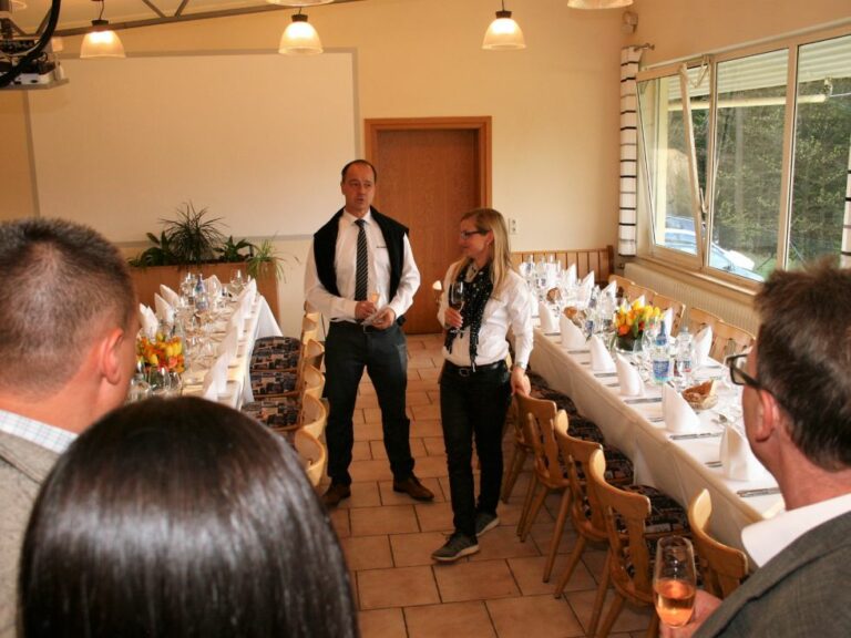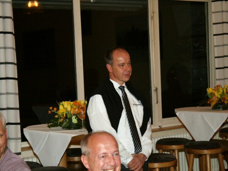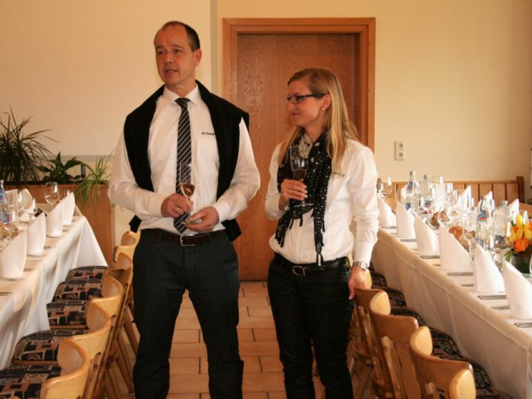 Nach dem Sektempfang und der Begrüßung durch Fördervereins-Chef Martin Dernbach im vollbesetzten Clubhaus gab es die Weinprobe vom Schloss Eberstein. Neben dem Rose-Sekt kamen Weißwein, Rotwein und Dessertwein zur Verkostung. Das Wildschwein wurde zubereitet durch Gourmet-Koch Bernd Werner vom Schloß Eberstein, der unterstützt wurde von den Nachwuchs-Gourmets-Köchen Nico Werner und Phillip Dernbach, die jeweils die Vor-Haupt-und Nachspeisen profihaft vorstellten.